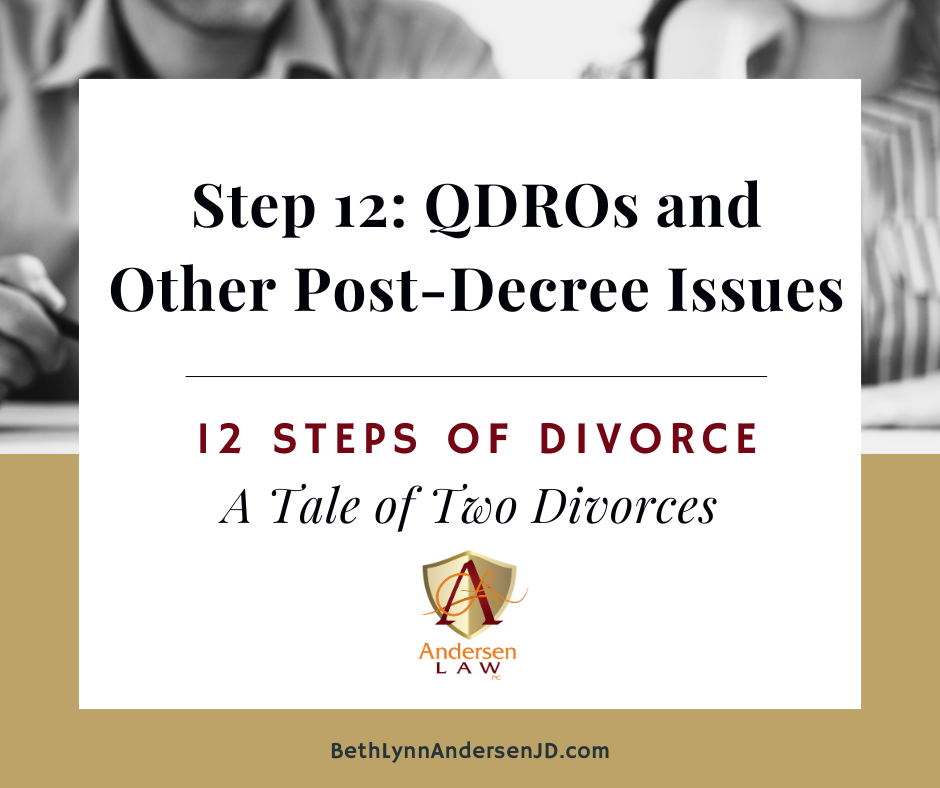Over 12 months, the Andersen Law PC blog is spelling out the 12 steps of divorce. This month, we’re focusing on the final step: QDROs and other post-decree issues.